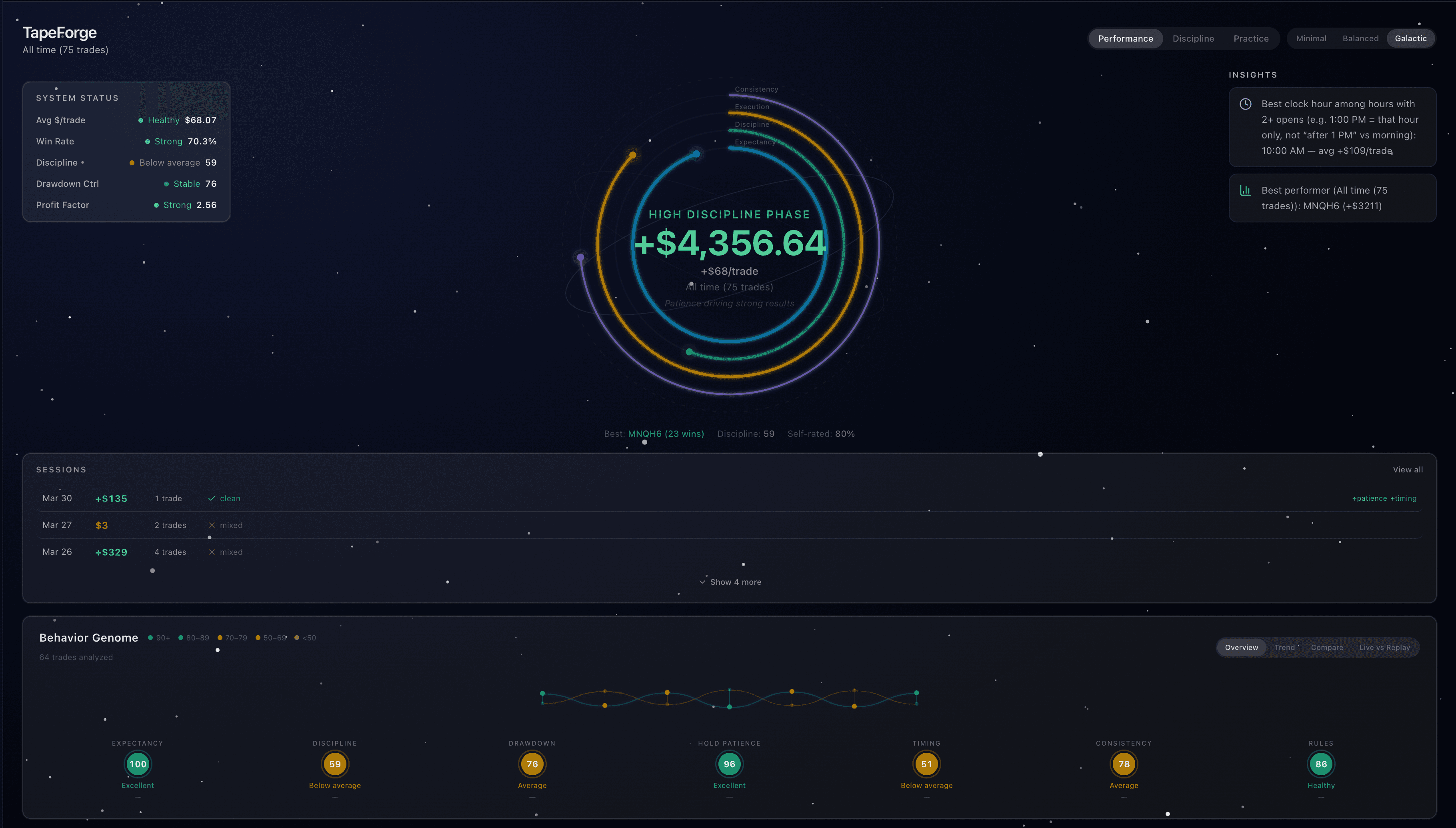 Join early access to TapeForge and start reviewing trades, tracking habits, and building better performance over time.